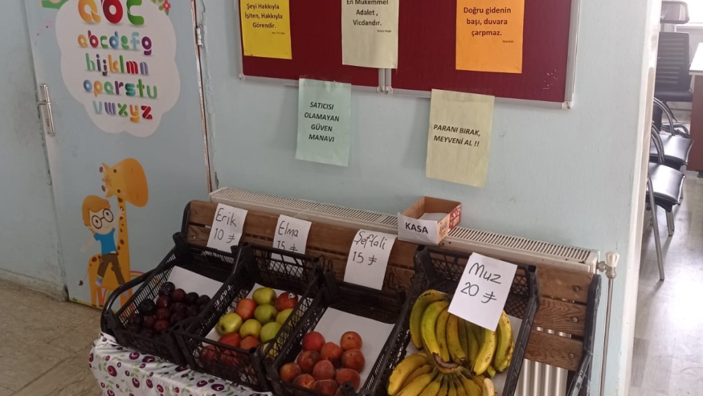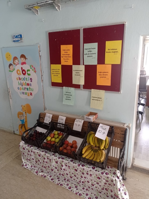 Okulumuzda öğrencilerimizin dürüstlük doğruluk güven gibi ahlaki değerleri benimsemeleri ve sağlıklı beslenmeyi özendirmek amacıyla 'Satıcısı Olmayan Güven Manavı' etkinliği yapıldı.